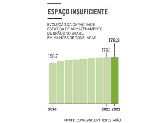 O Brasil só consegue armazenar um pouco além da metade da quantidade de grãos que produz a cada ano, considerando os últimos levantamentos de safra da Companhia Nacional de Abastecimento (Conab) e do Instituto Brasileiro de Geografia e Estatística (IBGE).