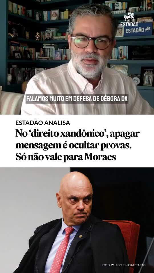 “No direito xandônico, apagar mensagem é ocultar provas. Só não vale para Xandão, diz Andreazza. Imagem Reprodução Blog Estadão